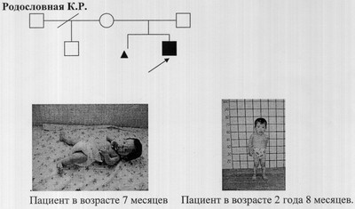 Анамнез заболевания: Ребенок был осмотрен в возрасте 4 месяцев в медико-генетической консультации и выставлен диагноз: Метафизарная хондродистрофия, тип Маккьюсика. До 2006 года ребенок наблюдался в медико-генетической консультации Республиканской больницы – НЦМ Минздрава Республики Саха(Якутия) с клиническим диагнозом: Метафизарная хондродистрофия, тип Маккьюсика. После проведения молекулярно-генетического анализа был выставлен окончательный диагноз: 3-М синдром.