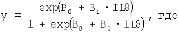 B0, B1 – эмпирические коэффициенты; ИЛ8 – значение уровня интерлейкина 8. Эмпирические коэффициенты В0 и B1, приведены в таблице
