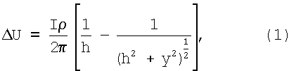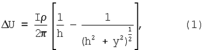 Падение напряжения U между двумя электродами сравнения в грунте по линии, перпендикулярной оси трубопровода, можно определить из выражения: