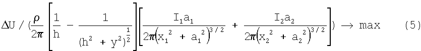 Поставленная задача решается тем, что в способе определения наличия и площади эквивалентного повреждения в изоляционном покрытии подземного сооружения, заключающемся в измерении с помощью двух электродов сравнения падения напряжения U в грунте, установленных на расстоянии у по линии, перпендикулярной оси трубопровода, определяют глубину залегания оси трубопровода в месте измерения h, с поверхности земли над трубопроводом измеряют удельное электрическое сопротивление грунта с помощью четырехэлектродной схемы, располагая электроды по линии, перпендикулярной трубопроводу, определяют силу тока на выходе двух установок катодной защиты I1 и I2, между которыми производят измерения, минимальное расстояние от анодных заземлений установок катодной защиты до трубопровода a1 и а2, расстояние от места измерений до места подключения установок катодной защиты к трубопроводу х1 и х2, а площадь эквивалентного повреждения Sпов определяют по формуле: