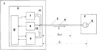 Узел обработки информации 10 выполнен с возможностью расчета остаточной электрической емкости уцелевшего участка Сост контрольной пары проводов 3,4 и величины Lост.
