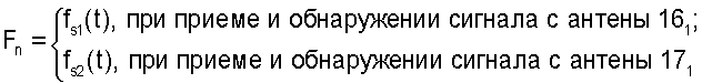При амплитуде входного сигнала Unpm=U(Fn, npm) меньше порога обнаружения БЦВМ 13 устанавливает Пnpm=П(Fn, npm)=0; возобновляет поиск сигнала по частоте и продолжает М-кратное секторное сканирование по углу. По окончании М-кратного секторного сканирования по углу БЦВМ 13 по результатам записей вычисляет азимутальную координату каждого n-го обнаруженного источника излучения: