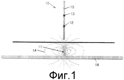 Фиг.1 представляет собой схему, отображающую распределение магнитных силовых линий магнитного маркера, установленного на подземном объекте, и способ его обнаружения.
