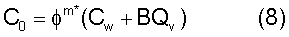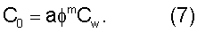 Скорректированные значения общей пористости также используют для проведения различия в подземных пластах между насыщением водой и насыщением углеводородом. Ключевой момент этого процесса вытекает из различия между истинным электрическим удельным сопротивлением пласта, Rt, и электрическим удельным сопротивлением, R0, которое наблюдается в случае, когда пласт заполнен минеральным раствором (рассолом), имеющим такое же электрическое удельное сопротивление, что и пластовая вода в стволе скважины, Rw. Существуют несколько моделей электрического удельного сопротивления, которые могут быть использованы для оценки электрического удельного сопротивления заполненного водой пласта в процессе 56 оценки электрического удельного сопротивления заполненного водой пласта, но только немногие из них считаются имеющими научную основу. Обычно эти модели основаны на результате исследования Арчи, заключающемся в том, что удельную проводимость С0 заполненного водой пласта, C0=1/R0, можно считать пропорциональной общей пористости, возведенной в степень и умноженной на удельную проводимость Cw воды: