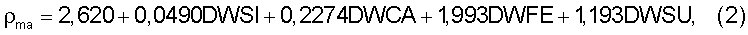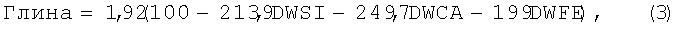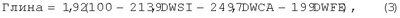 где DWSI – концентрация кремния в десятичных долях единицы, DWCA – концентрация кальция, DWFE – концентрация железа и DWSU – концентрация серы по данным спектроскопических измерений.