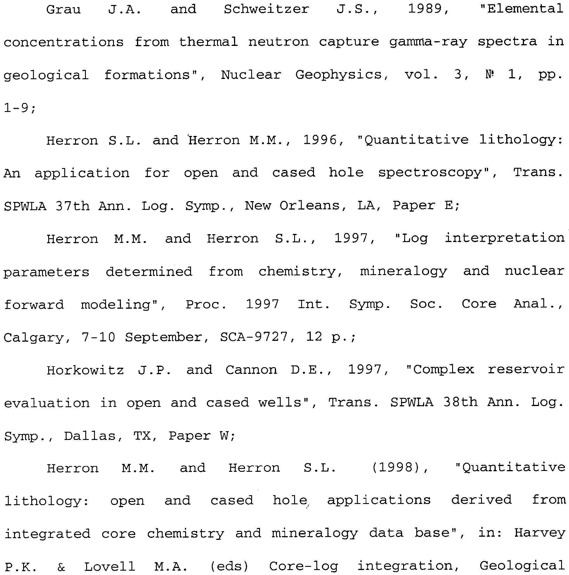 Процесс определения проницаемости земного пласта при использовании данных минералогии или на основании литологических концентраций рассмотрен значительно более подробно в нижеследующих источниках и в обычным образом переуступленных патентах США, каждый из которых включен в настоящую заявку посредством ссылки: