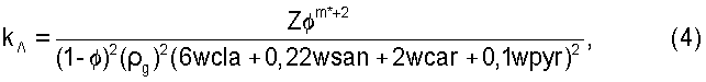 а wcla, wsan, wcar и wpyr – литологические весовые доли глины, песчаника (кварца, полевого шпата и слюды), карбонатов и пирита, соответственно.