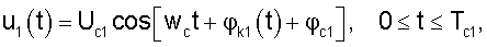 где Uc1, wc, c1, Тc1 – амплитуда, несущая частота, начальная фаза и длительность колебания;