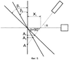 Видно, что данная формула дает правильный результат для величины X1, если поверхность практически не деформирована, то есть когда угол разворота элемента поверхности к оптической оси объектива видеокамеры близок к 90° (фиг.5). Если угол меньше 90°, то величина А не определяет однозначно величину расфокусировки X1. На фиг.5 для примера показаны две деформированные поверхности (расположенные под углами 1 и 2 соответственно), которые при одинаковой величине расфокусировки X1 имеют разные расстояния штриха от оптической оси объектива: A1 и A2 соответственно. Очевидно, что при наличии одного щелевого осветителя принципиально невозможно по значению А точно определить величину X1, пользуясь формулой (3).