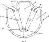 Каждый держатель 3 охватывает три обруча, при этом два концевых обруча 9 и 10 размещены на верхней и нижней концевых частях держателя, а промежуточный обруч 11 расположен в средней части держателя. Количество промежуточных обручей, располагаемых между концевыми обручами, может быть более одного.