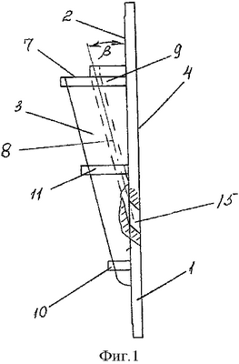 Пластина 1 имеет средства 16 для крепления устройства на несущей поверхности. В случае облегченного варианта выполнения устройства при использовании его для установки небольших флажков в качестве крепежного средства могут быть использованы вакуумные присоски.
