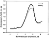 Были проведены исследования структурно-энергетических характеристик поверхностного слоя двух образцов твердого вещества – армко-железа и сплава железа с хромом и никелем ИЧХ28Н2. Для определения компонента с максимальным процентным содержанием в каждом образце, поверхности образцов облучали первичными ионами азота. Масс-спектрометрический анализ подтвердил, что максимальное процентное содержание в образцах имеет компонент – железо. Для данного компонента были проведены измерения зависимости тока вторичных ионов (I) железа от вытягивающего напряжения (Евыт) при фиксированном значении фокусирующего напряжения (Ефок), равным 5 кВ. Данные зависимости для двух образцов приведены на чертеже, на котором кривая 1 соответствует образцу армко-железа, кривая 2 – сплаву ИЧХ28Н2. Максимальное значение тока для 56Fe+ составило 2,65 относительных единиц, для ИЧХ28Н2 – 3,1225. Измерения зависимостей тока вторичных ионов железа от вытягивающего напряжения при данном фиксированном значении фокусирующего напряжения повторяли 5 раз для получения усредненных максимальных значений тока (интенсивности пика) с целью исключения случайной ошибки. Были определены средние значения тока вторичных ионов 56Fe+ в каждом образце с последующей нормировкой к 100% содержанию железа и получены относительные значения интенсивности пика железа для данных образцов. Перечисленные данные приведены в таблице 1.