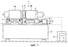 Из фиг.3, которая представляет собой сечение, выполненное по линии III-III на фиг.2, можно понять, что вторая опора 3 может быть “вытолкнута” вперед, в то время как один из поршневых штоков 5а2 и 5b2 пневмоприводов 5а и 5b воспринимает силу реакции от элемента 44 в виде плиты.