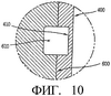 на Фиг.8, 9 и 10 представлены сечения, иллюстрирующие предохранительное устройство аккумулятора в соответствии с различными примерами осуществления настоящего изобретения, соответственно; и