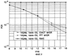 На фиг.3 показано сравнение численного моделирования в системе широкополосного МДКР, усредненного по большому количеству блоков моделирования, квадрата разности между решением w прямого обращения матрицы и фильтра длиной LF: J1=(Winv-WF)2 и соответствующего квадрата разности расширенного фильтра, используемого в частотной области J2=(Winv-W2F)2, где Winv это решение для w прямого обращения матрицы, WF – соответствующее решение из вышеописанного для фильтра длиной LF, и W2F – соответствующее решение для фильтра длиной 2F в области Фурье. Можно видеть, что метод расширения обеспечивает значительно более низкие частоты ошибок. Увеличение частоты ошибок при более высоких отношениях сигнал/шум является следствием использования методов Фурье.