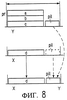 Предпочтительно, чтобы разделение на суб-кадры восходящей линии связи и нисходящей линии связи во всей системе МДКР выбиралось одинаковым, иначе это может привести к помеховой ситуации, показанной на фиг.7. Согласно фиг.7 оператор В создает помехи из-за более высокой мощности передатчика, а диапазон Y из указанных диапазонов Х и Y создает помехи из-за близости расположения. При различных длительностях суб-кадров нисходящей линии связи и восходящей линии связи будет происходить перекрывание по времени части суб-кадра нисходящей линии связи ячейки радиосвязи с частью суб-кадра восходящей линии связи другой ячейки радиосвязи. В таком случае неподвижная станция может создавать помехи своей соседней неподвижной станции или мобильным станциям на границе ячейки, осуществляющим передачи с большей мощностью из-за максимального расстояния от их неподвижной станции, и может создавать помехи ближайшей мобильной станции соседней ячейки. Таким образом, также выгодно в этом случае использовать синхронизированное подразделение кадра на множество временных интервалов с измерением напряженности поля перед занятием свободного временного интервала.