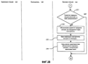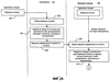 На фиг.2А и 2В представлены блок-схемы, иллюстрирующие этапы примерного процесса обработки, которые можно использовать, чтобы преодолеть вышеупомянутые недостатки системы 100 сотовой телефонной связи. Передача сигнала происходит от удаленной станции 126 на повторитель 120, где она принимается, как показано в блоках 201 и 202. Сигнал обрабатывают с целью включения в него дискриминанта, имеющего сигнатуру, связанную с повторителем 120, как показано в блоке 204. Затем обработанный сигнал передают от повторителя 120 на базовую станцию 104, как показано в блоке 206. Далее сигнал, переданный повторителем 120, принимается базовой станцией 104, как показано в блоке 208. Затем принятый сигнал обрабатывается для идентификации передач, которые включают в себя дискриминант, приложенный повторителем 120, как показано в блоках 210 и 211. В любой данный момент времени базовая станция 104 может принимать множество сигналов, потенциально от одной или нескольких удаленных станций 112, расположенных в ее зоне охвата, и/или от одной или нескольких удаленных станций 126 в зоне 128 охвата повторителя 120. Каждый из множества сигналов анализируют, чтобы определить, включают ли они в себя дискриминант (как показано в блоке 211), и если да, то они обозначаются как переданные через повторитель 120. Поскольку обычно имеется множество базовых станций 104 и более одного повторителя 120, связанного с каждой базовой станцией 104, дискриминант, добавленный к переданному сигналу каждым повторителем 120, может включать в себя конкретную сигнатуру для различения данной передачи как обработанной конкретным повторителем 120. В указанном случае сигнатура анализируется и используется для определения того, с помощью какого повторителя 120 было передано сообщение. Это можно выполнить, например, путем сравнения сигнатуры в принятом сигнале с базой данных или информационным списком, относящимся к сигнатуре, для идентификации повторителя. Сигнатура может содержать частоту (например, частота дискриминанта идентифицирует повторитель), временную компоненту (например, временная диаграмма дискриминанта идентифицирует повторитель) или любую их комбинацию, как подробно изложено ниже. Если принятая передача сигнала включает в себя дискриминант, она обозначается как переданная через повторитель, как показано в блоке 212. Указанные сообщения можно проанализировать для идентификации сигнатуры, как показано в блоке 213. Обмен сообщениями может быть организован для посылки сигнатуры вместе с вызовом, с которым она связана, а также идентификационных характеристик сигнала, так что можно будет идентифицировать определенный повторитель. Например, в одном варианте передачу сообщений направляют в базу данных для идентификации повторителя, которая связывает конкретную сигнатуру с определенным повторителем (в этот момент вызов регистрируется как вызов, обслуживаемый через конкретный повторитель). Могут быть выполнены этапы для соответствующей записи хода выполнения вызова или для соответствующего обслуживания потребностей, связанных с определением местоположения.