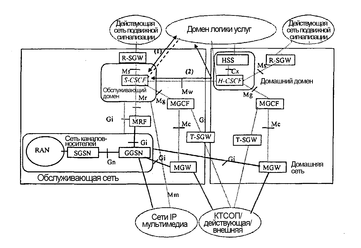 13. Подсистема по п.12, в которой блок, выполняющий функцию управления состоянием вызова посредника, сети абонента пересылает соответствующие сообщения подписки в блок, выполняющий функцию управления состоянием вызова обслуживания, сети абонента.