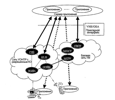Фиг.1 основана на базовой архитектуре ПП3П в соответствии с архитектурой, определенной в документе «Проект партнерства систем 3-го поколения, Группа по техническим спецификациям услуг и системных вопросов; Архитектура для сети с общим ИП; 3П (3G) TO (TR) 23.922 версия 1.0.0; Октябрь 1999», содержимое которого включено в состав настоящего документа путем ссылки в качестве Приложения В. Однако архитектура, раскрываемая в настоящем документе, изменена, как показано на Фиг.1, с тем, чтобы включить в ее состав сервер “присутствия” в соответствии с настоящим изобретением.