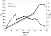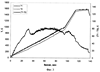 На фиг.3 представлен график, иллюстрирующий поведение температуры T1 поверхности спекаемого образца В (полужирная линия), температуры Т2 внутренней поверхности стенки тепловой изоляции (тонкая линия) и разницы T1-T2 между этими температурами (жирная линия). Заготовка керамического образца В содержит 4 мас.% акриловой смолы в качестве жидкого органического связующего.