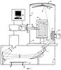 Температура заготовки 18, также как и температура внутренней поверхности стенки тепловой изоляции 19 измеряются двумя высокотемпературными термопарами 16. Головки термопар 16 находятся в контакте с соответствующими телами, а свободные концы термопар 16 соединяются через электрически изолированные выводы с измерительным устройством 17. Измерительное устройство 17 соединено через плату сопряжения с компьютером 20, который управляет температурно-временным ходом микроволнового нагрева заготовки 18. Компьютер через другую плату сопряжения соединен с источником питания 21, который питает микроволновый источник 1. Таким образом, цепь обратной связи охватывает компоненты установки для спекания, как это показано на фиг.1. Специально разработанное программное обеспечение управляет температурно-временным ходом нагрева заготовки 18 изделия в соответствии с заданным режимом.