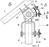 На фиг.4 – место Б на фиг.1, самоустанавливающееся колесо с первым и вторым цепными контурами для привода полых вальцов и соосно смонтированные верхний и нижний конические редукторы в качестве звеньев кинематической цепи.