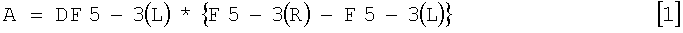 Для расчета кислотообразующей функции желудка берут левую ветку функции F5-3 и измеряют ее максимальный размах от «пика до пика» вдоль всей сегментарной оси. Получают значение DF5-3L. Далее в сегменте Th7 получают значение разницы (F5-3R и F5-3L). Перемножают два полученных значения согласно формуле [1]. Переводят значения А в единицы рН согласно таблице 1(см. фиг.2).