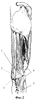 На фиг.2 показана схема второго этапа операции – вживление в толщу брюшка икроножной мышцы сухожилий стройной и полусухожильной мышц, сшивание сухожилия полуперепончатой мышцы с коротким лоскутом дистального фрагмента сухожилия двуглавой мышцы и сшивание длинных лоскутов дистального и проксимального фрагментов сухожилия двуглавой мышцы бедра.