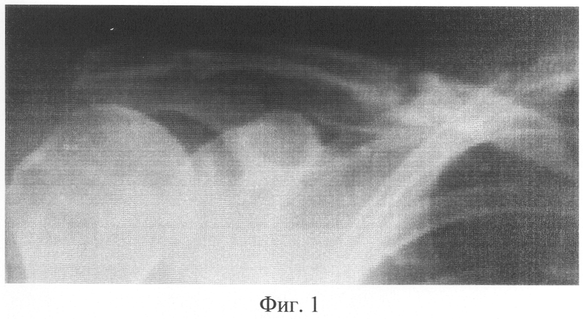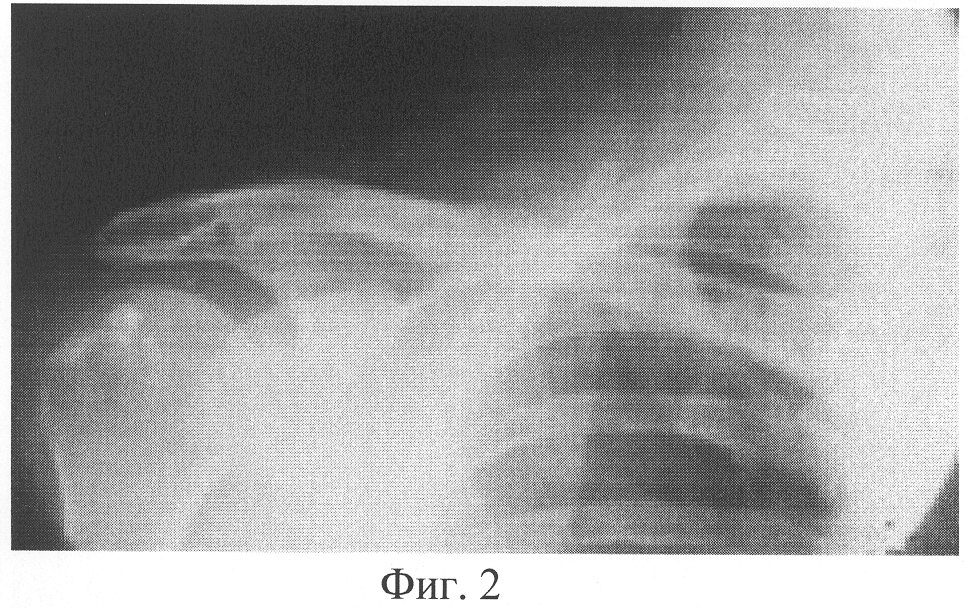 Пример 1. Больной Ф., 50 лет, поступил через 311 дней с момента травмы с диагнозом «Посттравматический псевдоартроз средней трети правой ключицы». Через 3 дня с момента травмы была выполнена операция – открытая репозиция отломков правой ключицы, остеосинтез интрамедуллярным стержнем. Через 122 дня после операции сращения не наступило. Стержень удален оперативным путем. После операции была наложена шина Горюнова. В дальнейшем Ф. получал физиофункциональное лечение. В течение всего срока лечения беспокоил болевой синдром и ограничение функции правой верхней конечности. В результате больной был направлен в клинику травматологии и ортопедии для оперативного лечения. При клинико-рентгенологическом исследовании выявлен тугой гиперпластический псевдоартроз средней трети правой ключицы. Рентгенограмма правой ключицы представлена на фигуре 1. Через 2 дня с момента поступления произведена операция – остеосинтез правой ключицы аппаратом внешней фиксации стержневого типа, закрытая остеоперфорация зоны псевдоартроза по Беку. В асептичных условиях стерильным скальпелем в стерильном почкообразном лотке измельчили 5 пластин биоматериала аллоплант для склеропластики до размеров крошки 1×1 мм. В условиях операционной у больного осуществили забор крови из кубитальной вены в объеме 5 мл. Затем аутокровь в объеме 5 мл в асептичных условиях перелили в предварительно стерилизованный флакон, куда добавили измельченный биоматериал аллоплант для склеропластики. Место будущей инъекции обезболили 5 мл 0,5% раствора новокаина. Вышеназванные субстанции перемешали и набрали в одноразовый шприц для инъекций, снабженный иглой Гордеева с диаметром отверстия 2 мм, после чего произвели однократную инъекцию лекарственной взвеси в полном объеме в зону ложного сустава.