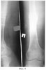 Пример 2. Больной Щ., 28 лет, поступил через 555 дней с момента травмы с диагнозом «Посттравматический псевдоартроз средней трети диафиза правой бедренной кости. Состояние после остеосинтеза металлической пластиной». Из анамнеза известно, что через 7 дней с момента травмы была выполнена операция – остеосинтез средней трети правой бедренной кости металлической пластиной. В течение всего срока лечения беспокоил болевой синдром и ограничение функции правой нижней конечности. Через 548 дней после остеосинтеза металлической пластиной сращения перелома не наступило. В результате больной обратился в клинику травматологии и ортопедии. При клинико-рентгенологическом исследовании был выявлен посттравматический псевдоартроз средней трети диафиза правой бедренной кости. Больному оперативным путем была удалена металлическая пластина. Рентгенограмма правой бедренной кости представлена на фигуре 3. Было налажено скелетное вытяжение за мыщелки правой бедренной кости, которое успешно функционировало в течение 15 дней. Затем была выполнена операция – остеосинтез правой бедренной кости аппаратом внешней фиксации стержневого типа. После чего в асептичных условиях стерильным скальпелем в стерильном почкообразном лотке измельчили 5 пластин биоматериала аллоплант для склеропластики до размеров крошки 1×1 мм. В условиях операционной у больного осуществили забор крови из кубитальной вены в объеме 5 мл. Затем аутокровь в объеме 5 мл в асептичных условиях перелили в предварительно стерилизованный флакон, куда добавили измельченный биоматериал аллоплант для склеропластики. Место будущей инъекции обезболили 5 мл 0,5% раствора новокаина. Вышеназванные субстанции перемешали и набрали в одноразовый шприц для инъекций, снабженный иглой Гордеева с диаметром отверстия 2 мм, после чего произвели однократную инъекцию лекарственной взвеси в полном объеме в зону ложного сустава. Послеоперационный период протекал без осложнений. В течение 45 дней ходил с двумя дополнительными опорами, затем – с одной, при этом получал физиотерапевтическое лечение, занимался лечебной физкультурой, посещал сеансы массажа. Период иммобилизации в аппарате внешней фиксации составил 95 дней (нормальные сроки сращения бедренной кости составляют 120-180 дней; в условиях отягощенного анамнеза – например, при ложном суставе, – затягиваются на неопределенный срок). Через 95 дней диагностировано сращение в зоне псевдоартроза, подтвержденное клинически и рентгенологически. Рентгенограмма представлена на фигуре 4. Осложнений в процессе лечения не было. Получен хороший анатомо-функциональный результат лечения.