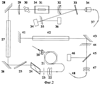 Далее, как показано на фиг.2, второй излучатель (скальпель-коагулятор), предназначенный для рассечения и коагуляции тканей, включает в себя резонатор на базе активного элемента из кристалла Nd:YAG 42 размером 6,3×100 мм. В качестве «глухого» зеркала резонатора второго излучателя использовано сферическое зеркало 41 с коэффициентом отражения излучения с длиной волны 1,064 мкм, равным 99,9%, и радиусом кривизны поверхности 2000 мм. Плоское зеркало 44 с коэффициентом пропускания излучения 50% служит выходным зеркалом резонатора. Плоское зеркало 43 используется как поворотное для уменьшения габаритов. Просветленная плокоскопараллельная пластина 45 служит для отвода части излучения в энергометр 46, для контроля выходной энергии импульса излучения. Двухкомпонентный объектив 47 с фокусным расстоянием 18 мм служит для ввода излучения в присоединяемый ко второму излучателю волоконный катетер 48.
