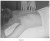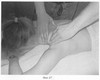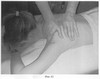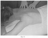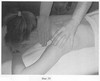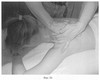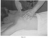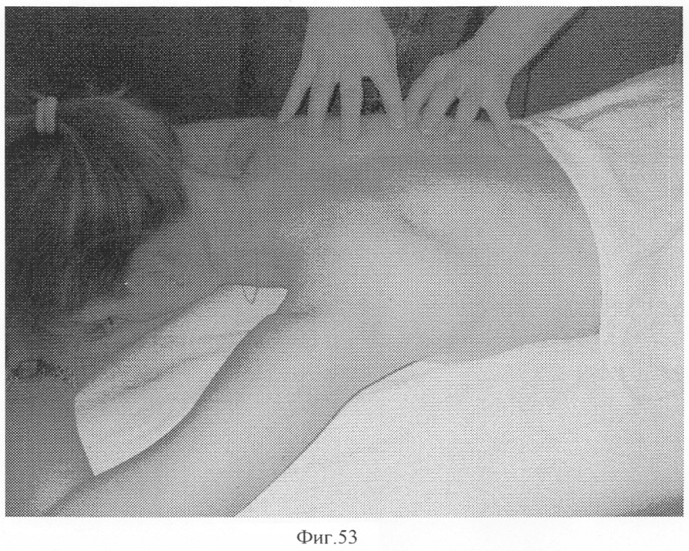 Начинают с интенсивной вибрационной стимуляции паравертебральных мышц кончиками пальцев под углом 90 градусов в течение 15 секунд на каждой стороне (фиг.51), после чего правой рукой продолжая вибрацию, но уже под углом 40-60 градусов, и стимуляцию производят ногтевой пластиной, что еще больше добавляет контрастности, а левой рукой под углом 20-40 градусов выполняют вибрацию, но навстречу правой руке 20-30 секунд (фиг.52), после чего выполняют обычное граблеобразное поглаживание 5-7 секунд (фиг.53).