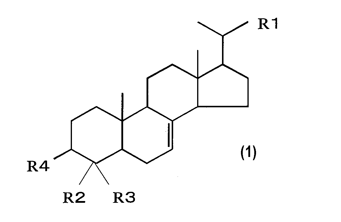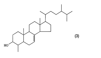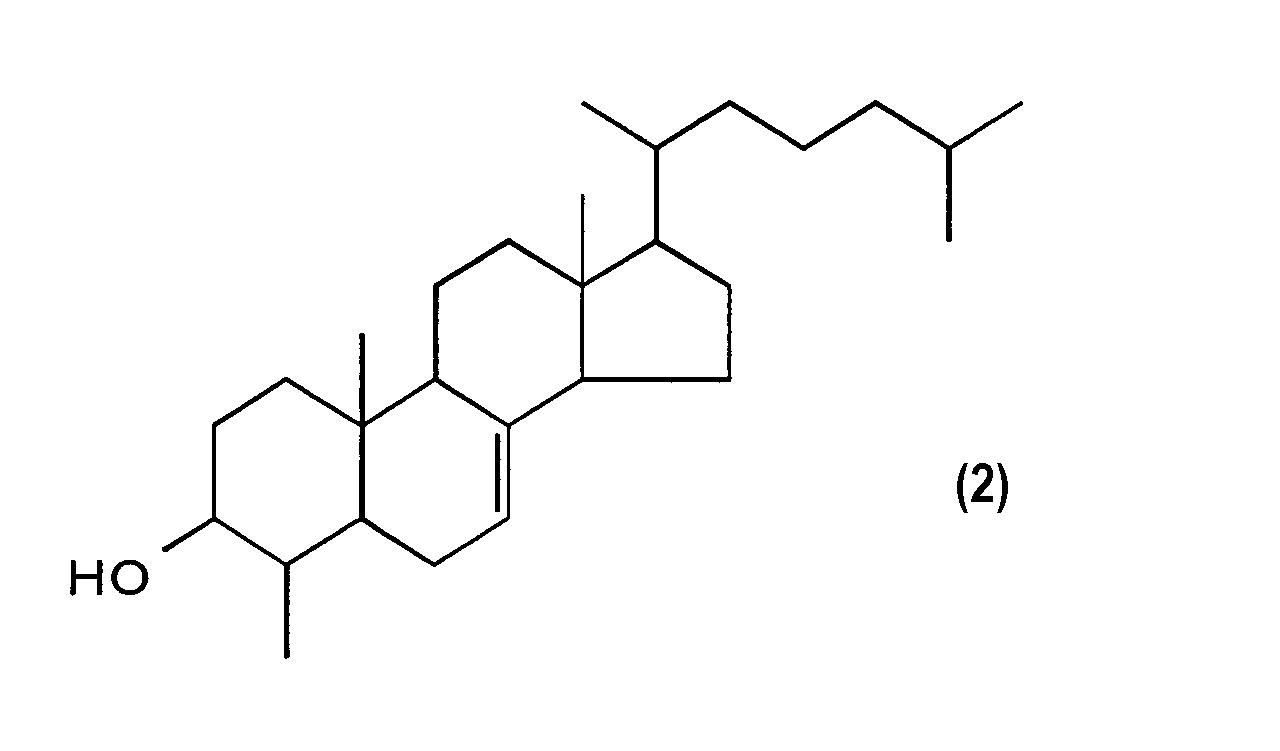 Кроме того, по предпочтительному варианту осуществления, вышеприведенное соединение, содержащееся в вышеприведенных лекарственном средстве и пищевом продукте или напитке, выбирают из группы, состоящей из 4-метилхолест-7-ен-3-ола, 4-метилэргост-7-ен-3-ола и 4-метистигмаст-7-ен-3-ола.