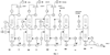 Установка для первичной дистилляции по патенту RU №2264430 содержит пять (или более) небольших колонн R1, R2…R5, объединенных одним или двумя прямыми потоками нефти (фиг.2), имеющих конденсаторы, нагреватели в первых четырех (или более) колоннах и острый водяной пар в поддоне пятой колонны и выдающих по одному товарному отбору из конденсаторов cond1, cond2…cond5 соответственно,