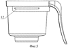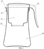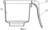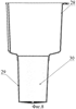 По третьему варианту приемная емкость 19 (воронка) вставляется в держатель 20, состоящий из элемента крепления 21 ручки и самой ручки 22 (фиг.7) и затем в емкость для очищенной жидкости 23 (фиг.6). В контейнере, выполненном по третьему варианту (фиг.6), емкость для очищенной жидкости 23 представляет собой конструкцию, аналогичную предыдущим (24 – верхняя часть емкости для очищенной жидкости, выполненная методом литья под давлением, 25 – горловина верхней части емкости для очищенной воды, 26 – средство для обеспечения упрочнения горловины 25, 27 – корпус емкости для очищенной воды, выполненный методом раздува).