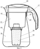 Известные в уровне техники фильтры для очистки питьевой воды кувшинного типа, относящиеся к устройствам для очистки жидкости, содержат приемную емкость для очищаемой воды, фильтрующий патрон, расположенный в нижней части емкости и заполненный фильтрующим материалом, емкость для очищенной воды с ручкой и крышку, закрывающую емкости для воды (США, № D 386,351, опубл. 18.11.1997, 07-01; США, № D 440,110, опубл. 10.04.2001, 07-01; США, № D 454,469, опубл. 19.03.2002, 07-01; Великобритания, №2269586, опубл. 16.02.1994, C02F 1/28; США, №4,969,996, опубл. 13.11.1990, B01D 24/22; США, №5,900,138, опубл. 04.05.1999, B01D 35/143; США, №5,882,507, опубл. 16.03.1999, B01D 17/12; США, №6,224,751, опубл. 01.05.2001, B01D 27/00; ЕР №0891952, опубл. 20.01.1999, C02F 9/00).