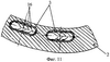 На фиг.10 показано сечение трубы с выступами на ее внутренней поверхности, а на фиг.11 – сечение вмороженной в литой бандаж тонкостенной трубы с тонкими лентами, приваренными к ее внутренней поверхности для интенсификации теплообмена.