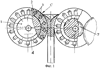 Конструкция валка-кристаллизатора поясняется чертежами на фиг.1-10, при этом на фиг.1 показано расположение валков-кристаллизаторов в двухвалковом литейно-прокатном агрегате, на фиг.2 – продольное сечение валка-кристаллизатора, а на фиг.3 – разрез по плоскости А-А. На фиг.4 показана схема подвода охладителя к бандажам, а на фиг.5 – разрез по плоскости В-В. На фиг.6 показана схема подвода охладителя параллельными потоками, а на фиг.7 – схема подвода охладителя при соединении части труб друг с другом камерами. На фиг.8 показана схема соединения труб криволинейными поворотными вставками, а на фиг.9 – соединения на концевых участках групп соединительных труб.