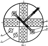 Расположение блоков регулярной перекрестноточной насадки 10-11 в пределах одной контактной ступени по «кресту» (см. фиг.1) позволяет реализовать секционированное взаимодействие по газовой фазе с необходимой кратностью дробления потоков.