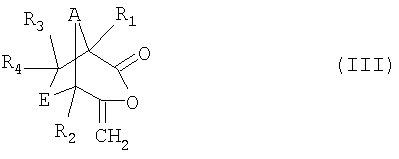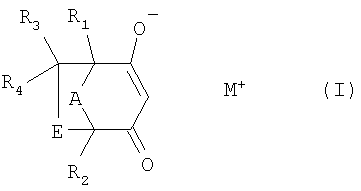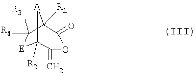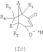Соединения формулы II известны или могут быть получены в соответствии с известными методами. Получение соединений формулы II, в которой каждый из R1, R2, R3 и R4, обозначает водородный атом, А обозначает метилен и Е обозначает метилен, описаны, например, в JP 10-265415. Способ в соответствии с изобретением особенно приемлем для получения соединений формулы I, в которой а) каждый из R1, R2, R3 и R4, независимо друг от друга обозначает водородный атом или С1-С4алкил, каждый из А и Е независимо друг от друга обозначает С1-С2алкилен, который может быть замещен один раз или до четырех раз С1-С4алкильной группой, а М обозначает ион щелочного металла, ион щелочно-земельного металла или аммониевый ион; б) каждый из R1 и R2, независимо друг от друга обозначает водородный атом или метил; в) каждый из R3 и R4 независимо друг от друга обозначает водородный атом или метил; г) А обозначает метилен, который может быть однократно или двукратно замещенным метильной группой, или этилен; д) Е обозначает метилен, который может быть однократно или двукратно замещенным метильной группой; и/или е) М+ обозначает натриевый, триэтиламмониевый или диизопропилэтиламмониевый катион. Способ в соответствии с изобретением еще больше приемлем для получения соединений формулы I, в которой каждый из R1, R2, R3 и R4 обозначает водородный атом, А обозначает метилен и Е обозначает метилен, а М+ обозначает натриевый, триэтиламмониевый или диизопропилэтиламмониевый катион. Реакционная стадия а). Кетоны можно окислять до алифатических эфиров в присутствии окислителей, таких как перкислоты, например перуксусная кислота, м-хлорпербензойная кислота и трифторперуксусная кислота, пероксид водорода или пероксид водорода в присутствии каталитически эффективных количеств диоксида селена, причем в только что введенную кислородную группу мигрирует углеродный атом. Такая реакция общеизвестна как перегруппировка Байера-Виллигера. Из специальной химической литературы известно также, что различные стерические, конформационные и электронные эффекты, а также эффекты, вызванные деформацией кольца, определяют положение, в котором вицинально по отношению к карбонильной группе вводят кислородный атом. Следовательно, остается неожиданным то, что в соответствии с изобретением в бициклических экзометиленкетонах с деформированным кольцом формулы II , в которой R1, R2, R3, R4, А и Е имеют значения, указанные для формулы I, с высоким уровнем селективности возможно введение между карбонильной группой и экзометиленовой группой кислородной группы и что благодаря этому возможно получение бициклических енольных лактонов формулы III , которые можно выделить, которые стабильны и, что является большим преимуществом для промышленной технологии, пригодны для дистилляции. Что касается некоторых соединений формулы III, например бицикло[3.2.1]октан-2,4-диона, то предлагаемый способ обладает особыми экономическими и экологическими преимуществами, поскольку используемые исходные материалы представляют собой нефтехимическое сырье, из которого в результате реакций присоединения, реакций конденсации с удалением воды и в принципе с использованием пероксида водорода как окислителя эффективно и без образования вредоносных сточных вод получают продукт формулы III На реакционной стадии а) предпочтительными окислителями для превращен
