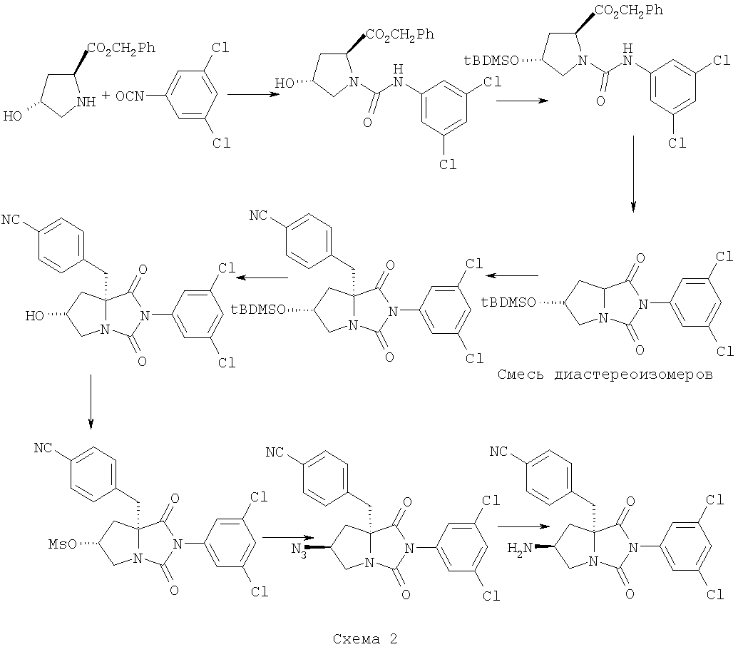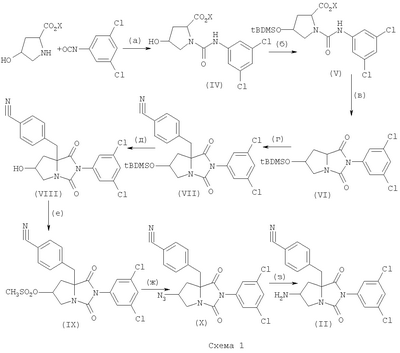 (5S,7S)-5-(4-цианобензил)-3-(3,5-дихлорфенил)-7-ацетиламино-1,3-диазабицикло-[3.3.0]октан-2,4-дион;