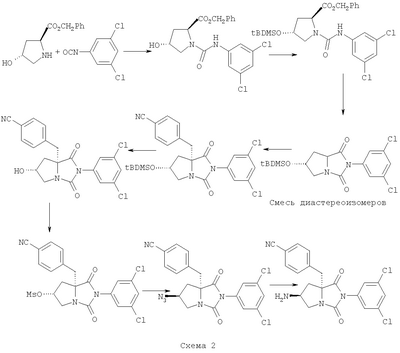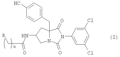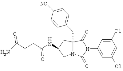 (5S,7S)-5-(4-цианобензил)-3-(3,5-дихлорфенил)-7-[(3-карбамоилпропионил)амино]-1,3-диазабицикло[3.3.0]октан-2,4-дион.