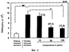 На фиг.3 показано влияние соединений В и С на аккумуляцию лейкоцитов при перитоните, индуцированном тиогликолятом, у кроликов. Группа отрицательного контроля (белый столбик) получала фосфатный буфер интраперитонеально, группа положительного контроля и лечебная группа (черные столбики) получали тиогликолят интраперитонеально. Через 3 часа после инъекции тиогликолята оценивали аккумуляцию лейкоцитов в брюшной полости. Результаты выражали как среднее значение±стандартное отклонение (S.E.M.) (n=7-8). % ингибирования показан в скобках. ##Р<0,001 относительно отрицательного контроля (студенческий т-тест/StatView). **P<0,01 относительно положительного контроля (двусторонний 30 тест Дуннетта/StatView).