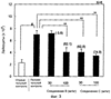На фиг.1 показано влияние соединения сравнения на аккумуляцию лейкоцитов при перитоните, индуцированном тиогликолятом, у кроликов. Группа отрицательного контроля (белый столбик) получала фосфатный буфер интраперитонеально, группа положительного контроля и лечебная группа (черные столбики) получали тиогликолят интраперитонеально. Через 4 часа после инъекции тиогликолята оценивали аккумуляцию лейкоцитов в брюшной полости.