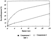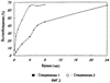 Фиг.2 представляет собой графическое изображение высвобождаемого количества лекарственных средств в присутствии плазмы мышей, выраженное в процентах по отношению к суммарному количеству лекарственного средства в примере 4. По абсциссе отложено время, а по ординате – высвобождаемое количество.