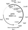 Схема плазмиды pHIG с рестрикционной картой изображена на Фиг.1. Общий размер плазмиды pHIG – 8,42 т.п.о.