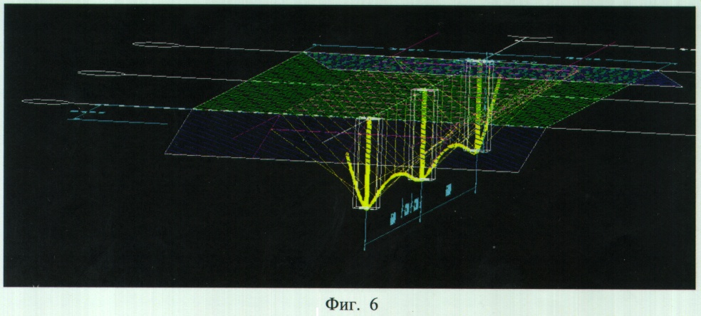 Изображения на фиг.5 – иллюстрация №1 линейного локального участка ферменно-ленточного фундамента (в цветовом представлении элементов) и на фиг.6 – иллюстрация №2 линейного локального участка ферменно-ленточного фундамента (в цветовом представлении элементов) даны в цвете исключительно для наглядной иллюстрации конструкции ферменно-ленточного фундамента, наглядность которого в черно-белом изображении (а тем более в 3D виде) несколько ниже. Чертежи в цвете не являются составной частью комплекта документов к заявлению – это лишь иллюстративный материал.