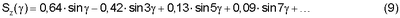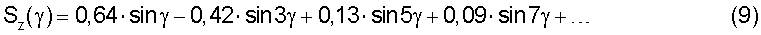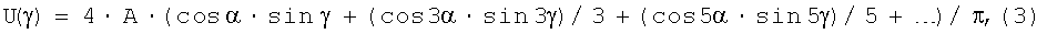 Для оценки эффективности предлагаемого способа и устройства для его осуществления разложим в ряд Фурье трехпозиционные (уровни “-1”, “0” и “+1”) сигналы U( ) (соответственно Су( ), Sy( ), Sz( ), Cz( )) с выходов гироскопического датчика опорных периодических по углу крена ракеты модулирующих сигналов известного и предлагаемого устройств для модуляции релейных сигналов управления вращающейся по углу крена ракетой в соответствии с зависимостью (3).