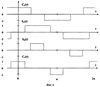Схема коллектора предлагаемого устройства поясняется на фиг.3, где представлены вертикально расположенные секторы 1 с угловыми размерами 2· /3, соответствующие управлению по каналу тангажа, изолирующие элементы 2 и горизонтально расположенные секторы 3 с угловыми размерами /3, соответствующие управлению по каналу рыскания. Вертикально расположенным секторам 1 соответствуют трехпозиционные опорные периодические по углу крена ракеты модулирующие сигналы с шириной импульсов, равной 2· /3, а горизонтально расположенным секторам 3 соответствуют трехпозиционные опорные периодические по углу крена ракеты модулирующие сигналы с шириной импульсов, равной /3, что представлено на фиг.4.