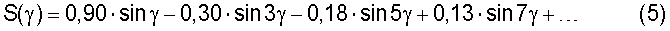 Анализ зависимостей (4) и (5) показывает, что для известного устройства коэффициенты амплитуд 1-й (основной) и 3-й гармонических составляющих по каналам тангажа и рыскания попарно равны между собой: AY1=AZ1=0,90, АY3=АZ3=0,30; коэффициентами амплитуд 5-й и последующих гармоник можно пренебречь ввиду их малости.